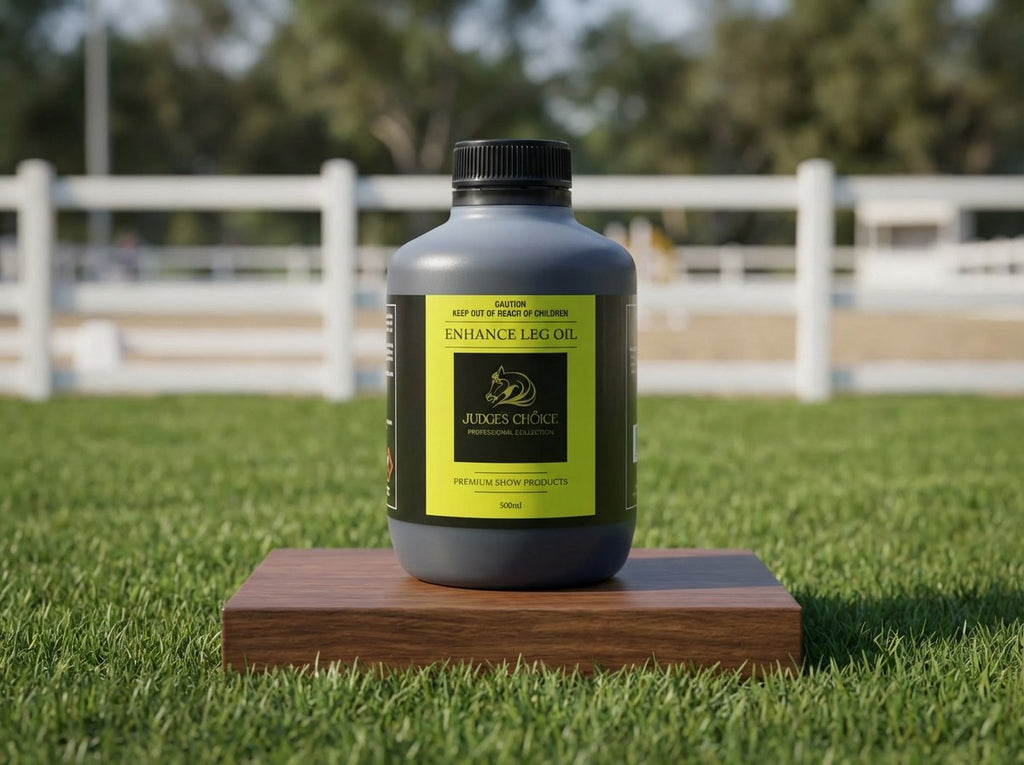 Get the professional showring finish on your horse’s legs using Judges Choice Enhance Leg Oil. Enhance Leg Oil will help to cover scars and blemishes, and darken your horses’ legs and points, making them glossy, and showring ready. Use instead of ravens oil, this product was manufactured to enhance your horses leg colour.
